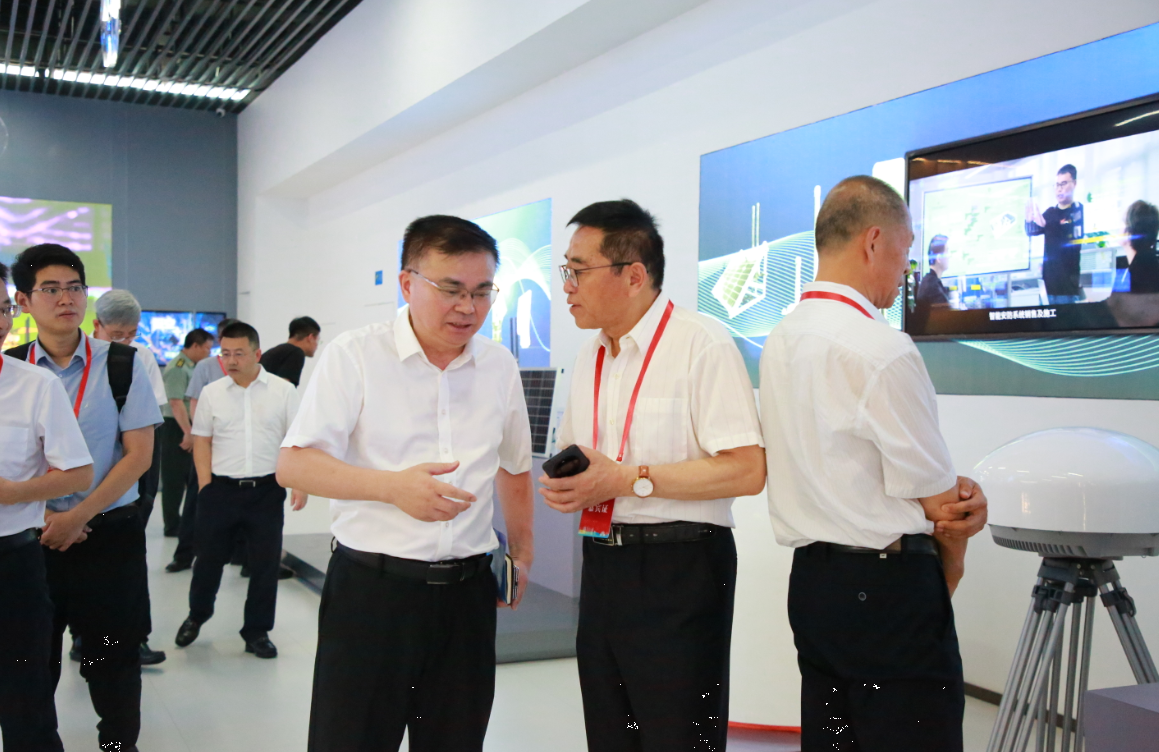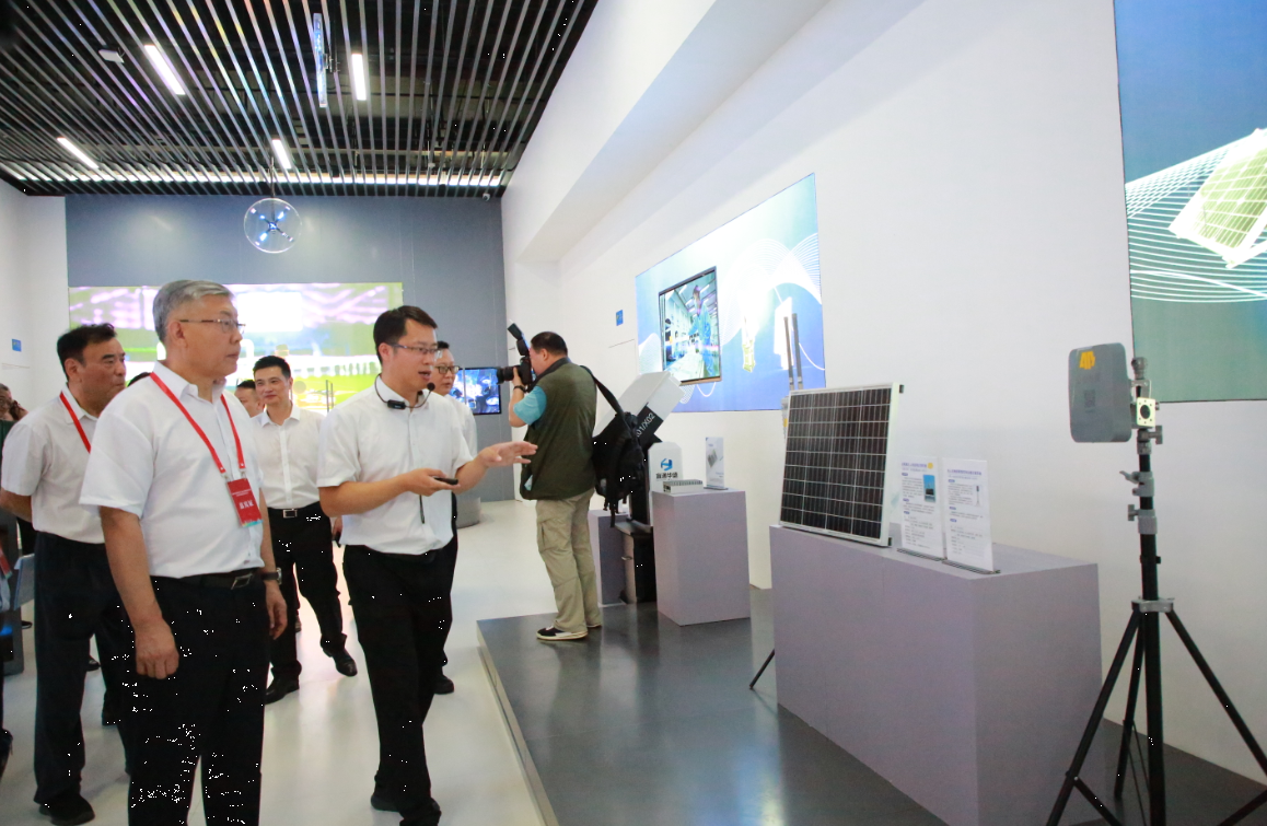 仪式结束后,领导和嘉宾到展厅观摩了公司自主开发的新能源远程识别基站、物联网融合基站以及“一机一码”等基础信息采集设备。