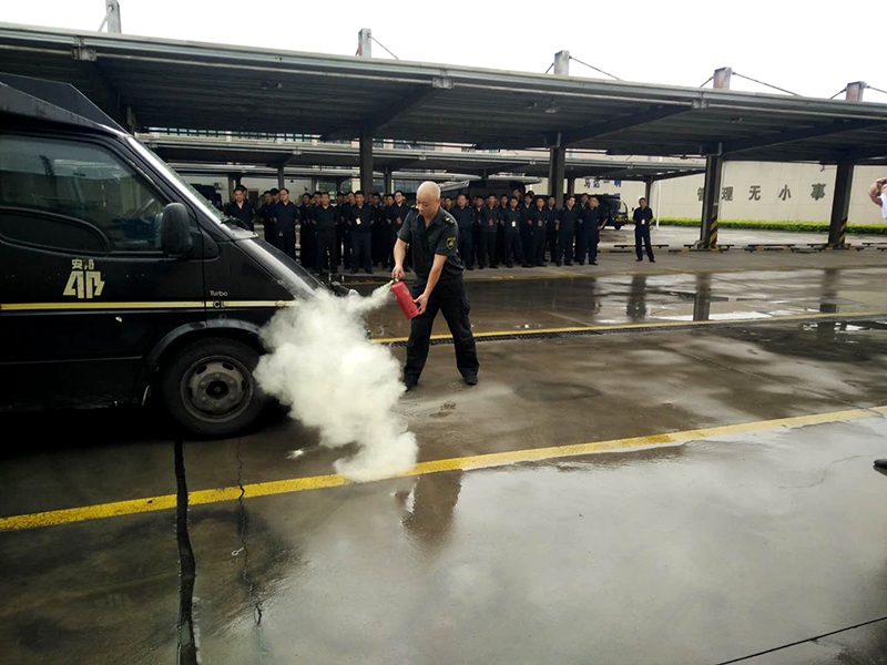 此次演练分为轮胎装卸、防抢、消防演练三个科目,并现场讲解灭火器的种类和使用以及如何预防火灾和处理火灾等知识。