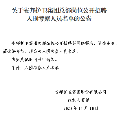 香港六合彩资料 总部岗位公开招聘入围考察人员名单的公告