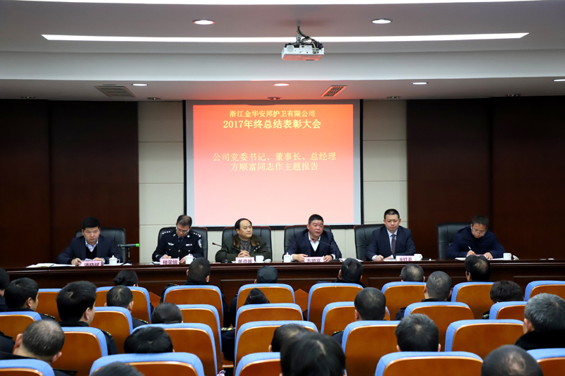 公司2017年度总结表彰大会在公司六楼多功能会议厅召开,总结一年来的工作成绩和不足,安排部署2018年主要工作。市国资委党委委员、副主任黄遵晖,公司党委书记、董事长、总经理方顺富,市公安局经文保支队副支队长楼荣锦,公司党委委员、副总经理张红兵、潘晓斌,专职监事徐林伟,公司各部门、大(中)队主要负责人,本部全体人员以及优秀党员、先进个人等参加会议。会议由张红兵主持。
