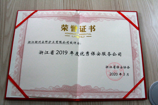 经过全体员工的共同努力,湖州公司被省保协评为“浙江省2019年度优秀保安服务公司”、被市财贸工会评为“2019年度优秀基层工会”、被市公安局评为“2019年度湖州市‘平安单位’暨‘智慧安防单位’”。