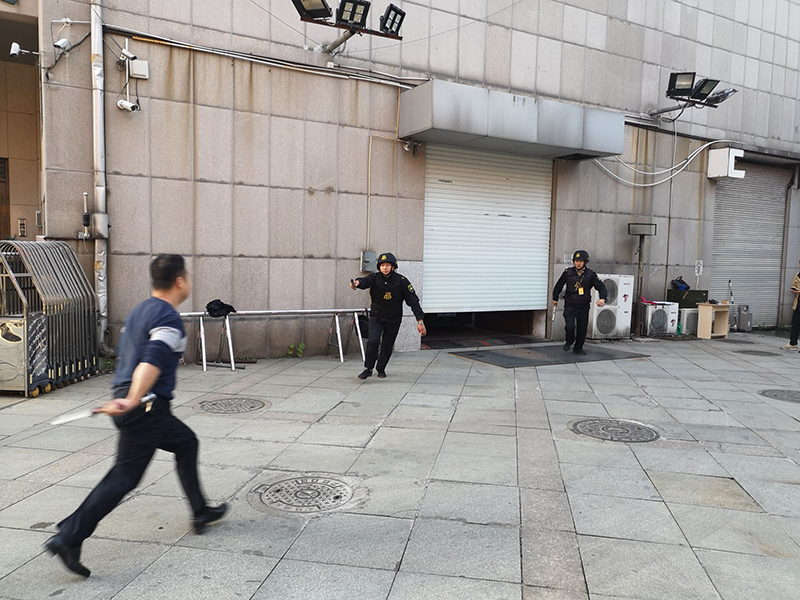 此次演练现场模拟歹徒进入库区被制服以及任务途中突发事件应急预案桌面推演等。