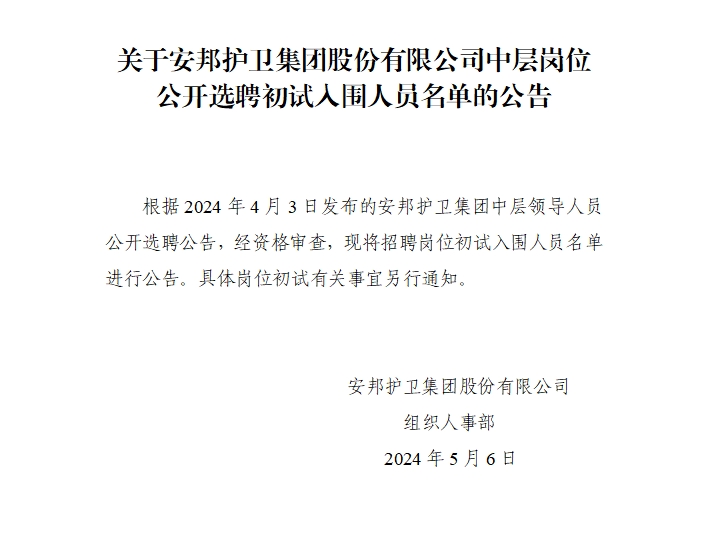 关于香港六合彩资料(中国)官方网站 中层岗位公开选聘初试入围人员名单的公告
