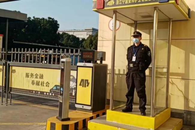 门岗卫士正在站岗执勤,严控外来人员和车辆进入,筑牢安全之墙。