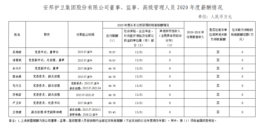 香港六合彩资料(中国)官方网站 董事、监事、高级管理人员2020年度薪酬情况