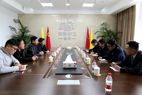 随着新基地启用,公司在稳固守押主业的同时,科技安防业务也在依靠平台优势不断取得进展。3月21日上午,浙江金温铁道开发有限公司和温州星河物业公司两家单位分别来到金融守押中心参观交流。公司党委书记、董事长、总经理徐建国和党委副书记、副总经理、科技分公司总经理钱小平接待了来宾。