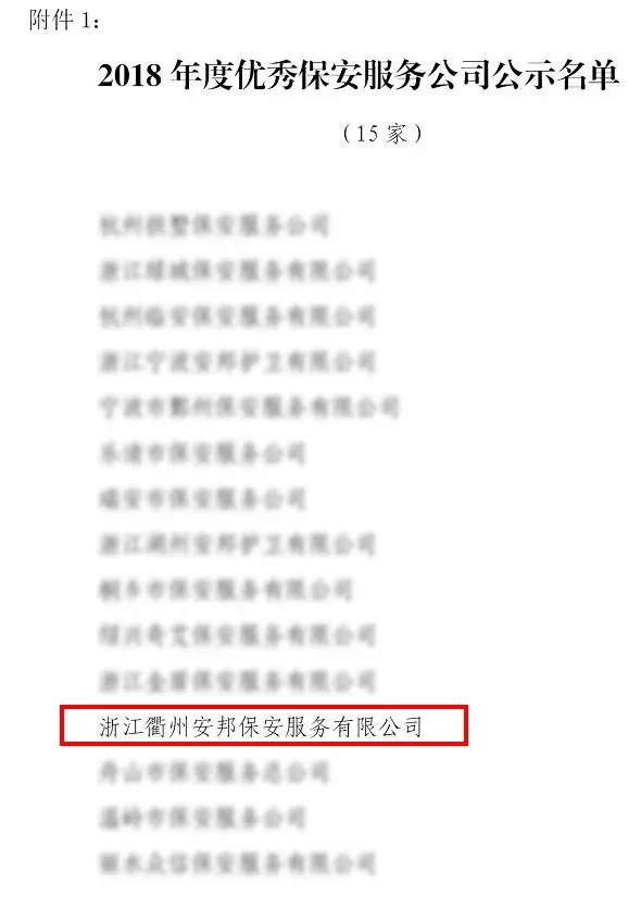 保安服务有限公司被浙江省保安协会评为“2018年度优秀保安服务公司”。衢州香港六合彩资料