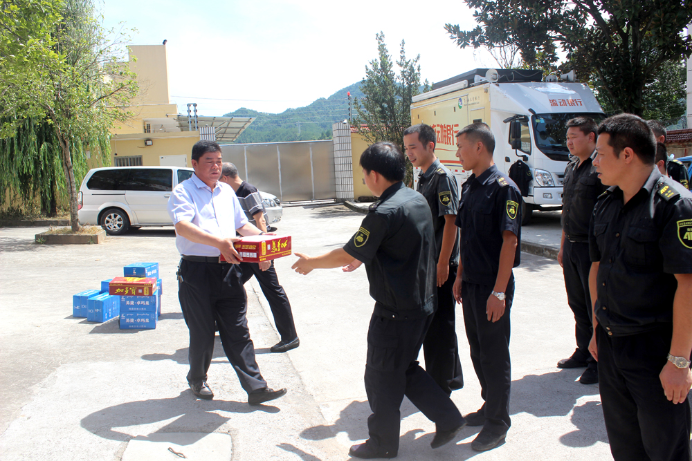 公司战斗在一线的守押队员们带来了极大的考验。为确保日常守押工作有序运行,7月17日,由公司总经理方顺富,副总经理张红兵、潘晓斌带队,兵分三路到公司下辖各大中队进行高温慰问,给队员们送去防暑降温用品的同时,也送去了公司对一线队员的关心和问候。