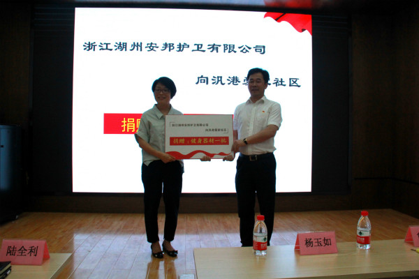 为完善社区体育健身基础设施建设,进一步拓展社区居民的活动空间,湖州公司向汎港爱家社区捐助健身器材一批,提高社区居民参与全民健身活动的积极性,丰富居民的精神文化生活。