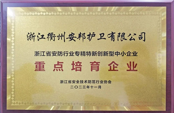 入库浙江省安防行业专精特新创新型中小企业培育名单