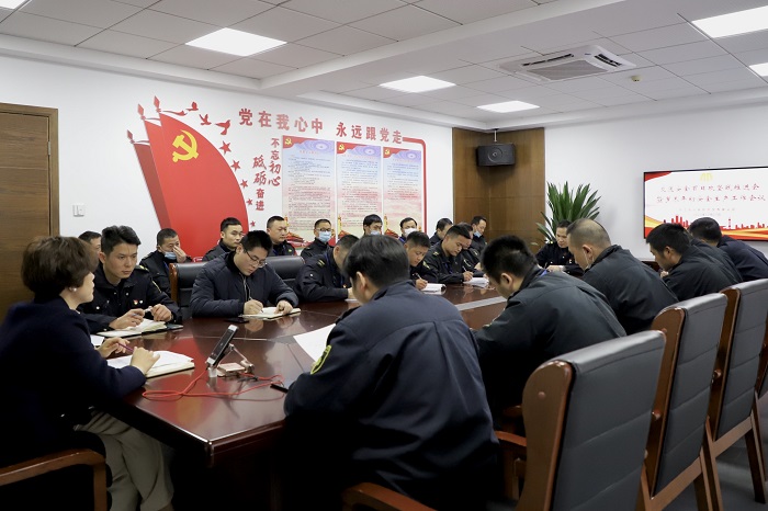 公司各相关部门负责人、中队长和车长代表及守押中心安全督查员参加会议。会议在守押中心和县市各队设置分会场,参会人员通过钉钉群参加视频会议。