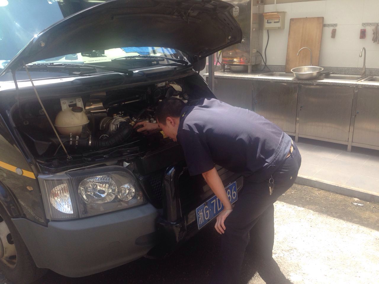 7月15上午,江北守押大队建行中队驾驶员,中共党员陈杰,在浦江建行营业部驻点,利用空闲时间,主动对车辆发动机进行例行检查,清洗油圬等。确保在酷暑高温下,车辆行驶正常。