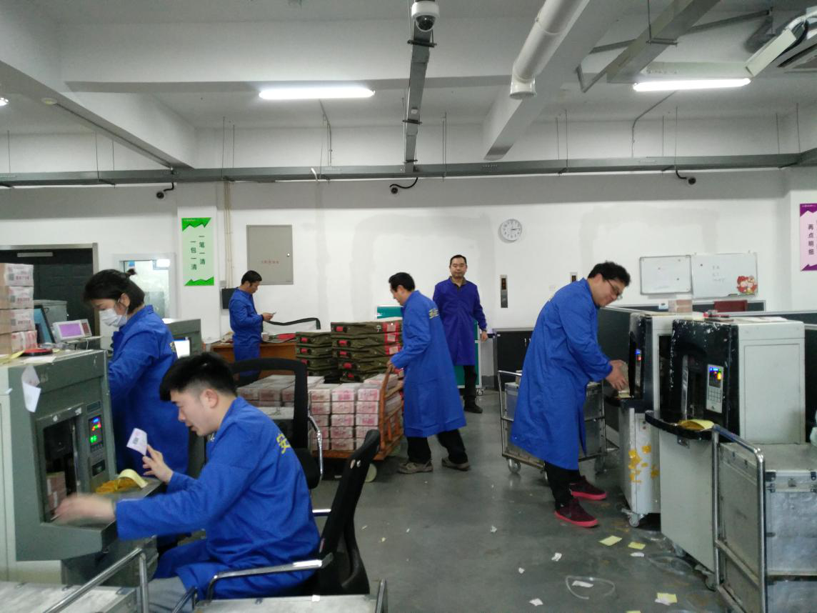现金清分中心全体人员牺牲休息与团圆的时间,加班加点集中清分,及时将各银行网点、代理行、上门收款单位封包收款现金清理完毕。在公司各部门的协助下,经过一个多月的“人机奋战”,现金清分中心累计清点、清分现金约25亿元。