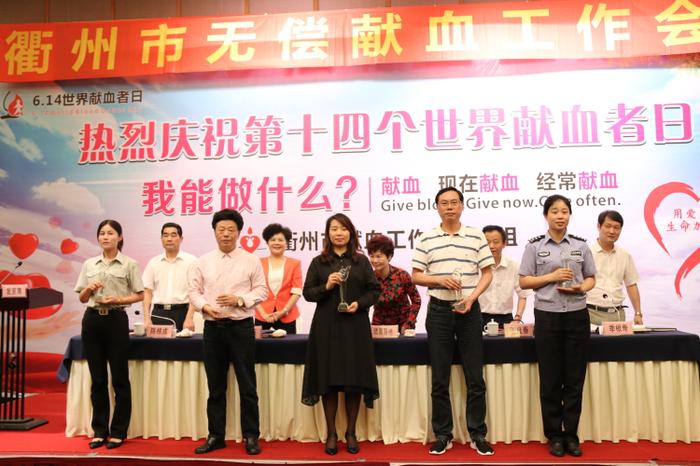 6月14日,2017年衢州市无偿献血工作会议在衢州国际大酒店召开。市领导诸葛慧艳、王良春、吕玉茹出席会议,市献血工作领导小组成员、第九届香樟奖获奖者及2016年度无偿献血爱心单位代表等110余人参加了本次会议。会上,浙江衢州香港六合彩资料 有限公司总经理童林华代表公司接受了2016年度“无偿献血爱心单位”的表彰。