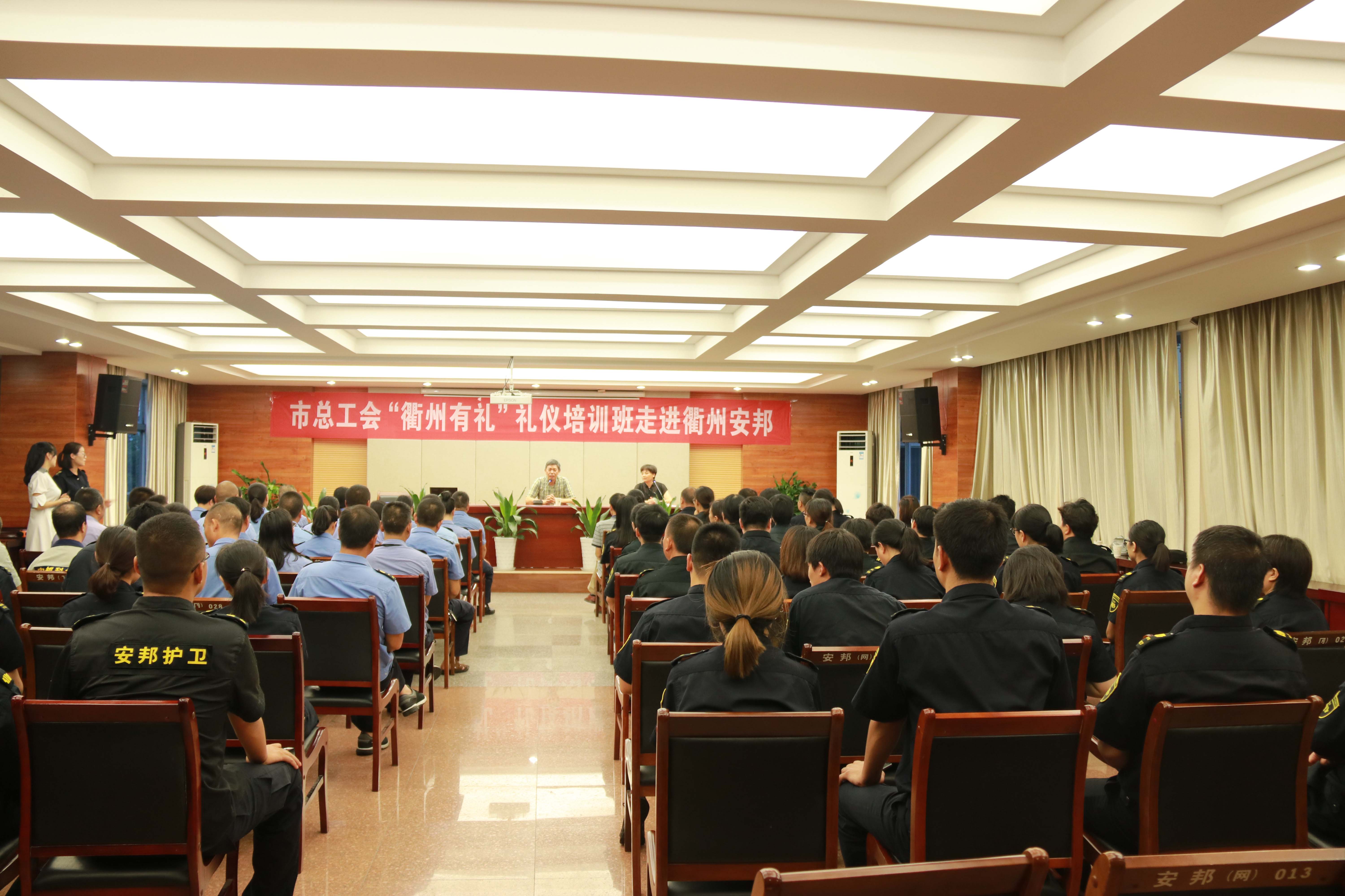 本次培训活动公司委托市总工会邀请了ACI国际注册礼仪师、知名企业金牌讲师许诺老师进行专题授课,共设两期,每期三天,培训对象涵盖了公司行政管理人员、守押队员、窗口服务人员、接警员以及保安员。