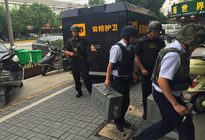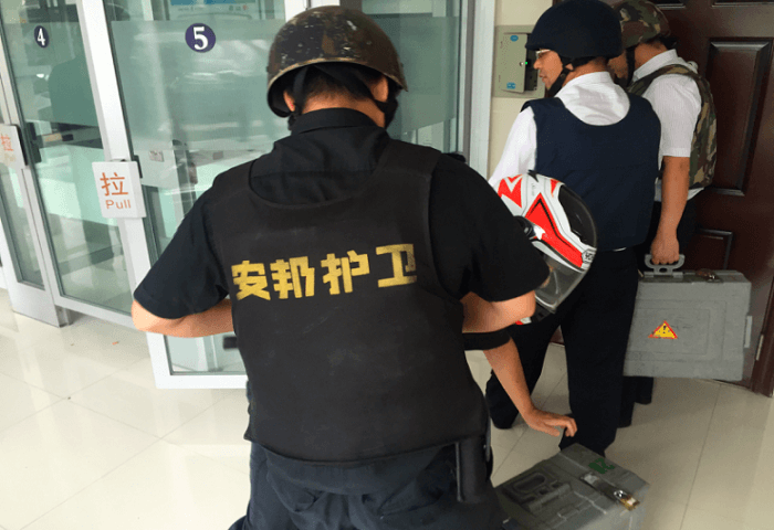 演练模拟场景当日下午15点,香港六合彩资料 公司运钞车到达海宁农商银行盐官支行丰兴自助银行执行加钞任务,当海宁农商银行加钞员提着款箱在押运员的护卫下,行至ATM机加钞间刚要打开防盗门时,突然窜出一名头戴摩托车头盔的男子,快速向加钞员冲过来,试图抢夺加钞员手中的款箱。被反应敏捷的押运员侧身一挡,阻止了歹徒抢夺款箱的意图,歹徒见抢夺未成,恼羞成怒,从腰间拔出一把匕首,押运员见状勇敢上前与持刀歹徒展开搏斗,车长第一时间用对讲机向指挥室和队长报告情况,同时驾驶员拉响车内警报,后持刀歹徒被制服并移交给前来处警的民警。