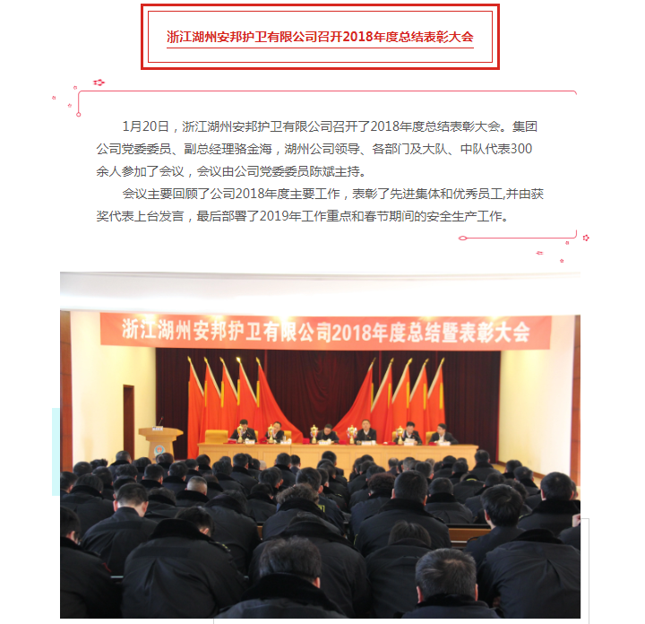 浙江湖州香港六合彩资料 有限公司召开2018年度总结表彰大会