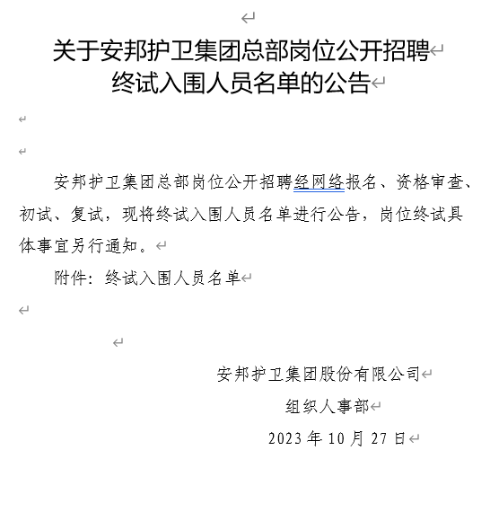 关于香港六合彩资料(中国)官方网站 总部岗位公开招聘终试入围人员名单的公告