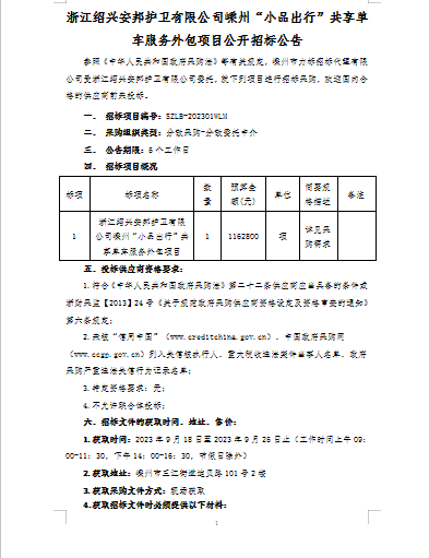 浙江绍兴香港六合彩资料 有限公司嵊州“小品出行”共享单车服务外包项目公开招标公告