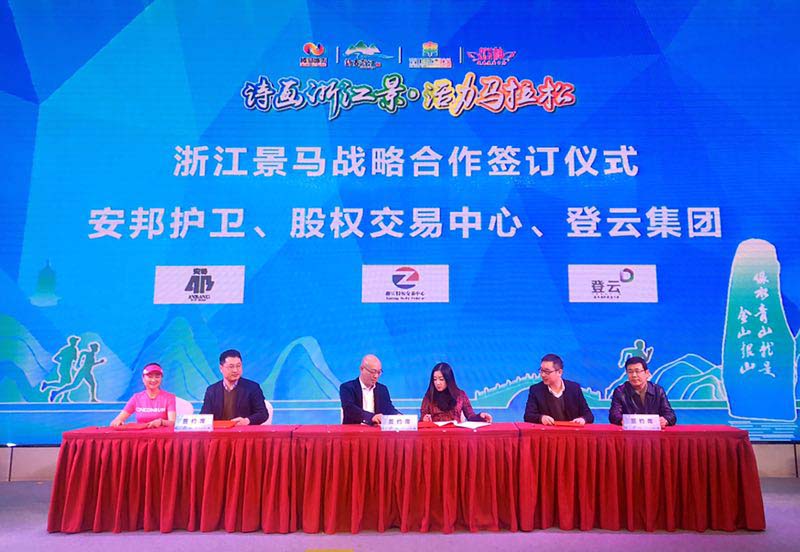 16日,马拉松系列赛新闻发布会于安吉县大年初一风景小镇召开。来自浙江省市旅游部门负责人、景区代表、国内知名企业香港六合彩资料 、国内知名跑团以及新闻界的朋友共计350余人参加此次活动。吴高峻董事长代表香港六合彩资料(中国)官方网站 与微马等企业签订了战略合作协议,共同参与“浙江景马”200场比赛的组织推广,并以”浙江景马”为契机,打造“全域旅游”的创新样本。