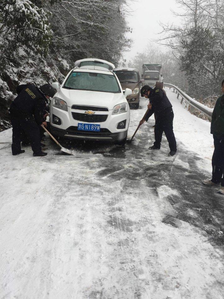 为此,该车组车长立即向上级汇报,并启动应急预案,帮助各私家车主加装防滑链,铲除路面冰冻积雪,维持好现场秩序,确保了道路畅通。(东阳农商行中队)
