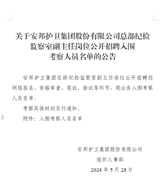 关于香港六合彩资料(中国)官方网站 总部纪检监察室副主任岗位公开招聘入围考察人员名单的公告