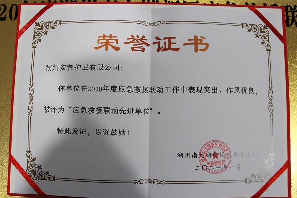 有限公司被湖州南太湖新区应急管理局评为“应急救援联动先进单位”。