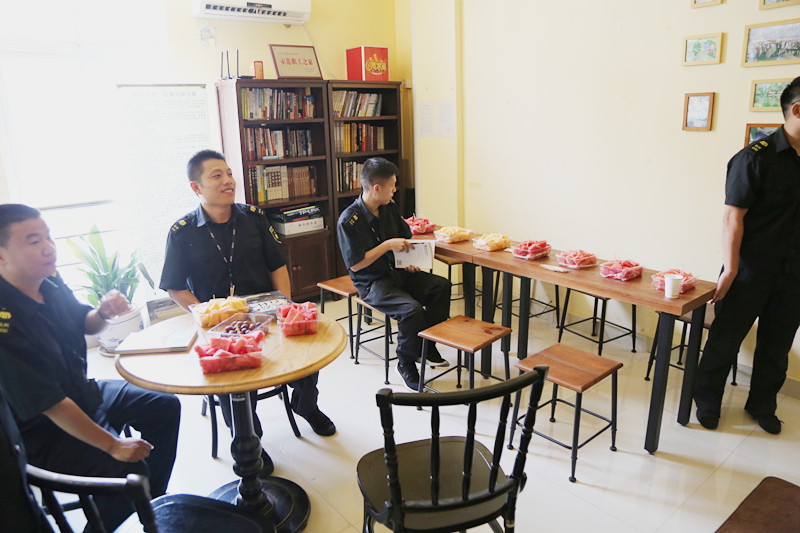 公司党委书记、总经理邓泉明对各部门、基地当前开展的关爱一线员工,慰问送清凉系列活动表示肯定。公司多年秉承以人为本的关爱文化,炎炎夏日,在押运车上配备冰块、防暑药品、急救箱,食堂熬制解暑汤,为员工提供棒冰、酸梅汤,全员发放饮料等多项措施做好防暑降温工作,让奋战在一线的金融卫士感受沁心清凉。