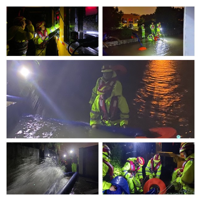 公司依托应急联勤保障基地,下足功夫、储足设备,在台风前夕,从市应急局调运移动式排水车、水陆两栖车,并开展了抢险演练。在14日20:30,接到市应急局指令,抽调10人前往镇海庄市参与抽水抢险工作,截至15日7:30,队员们连续奋战11小时,共开启3根排水管,累计排水量近2万立方,切实保证了周边社区安全,展现国企担当。
