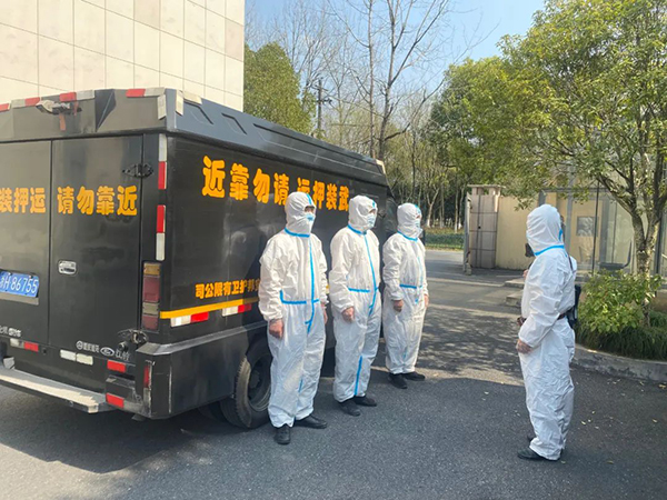 因为疫情封控等原因导致守押大队早接包人员不足,为保障城市金融安全畅通,守押大队立即安排晚接包和待命人员形成临时车组,统筹调配人车资源,大队全员配合,无一人提出异议,确保衢城金融服务正常有序开展。守押大队化身疫情防控消毒员,每天他们背着20多斤的消毒液对大院、金库、办公室、会议室、宿舍、食堂、车库、楼道、洗手间、快递室以及运钞车、款箱、枪支弹药进行消毒,让病毒无处藏身,为公司穿上防护服。