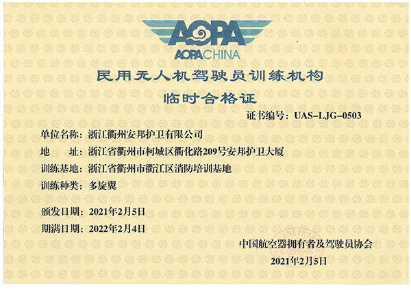 2021年2月4日,经过中国航空器拥有者及驾驶员协会(中国AOPA)无人机管理办公室专家审定后,浙江衢州香港六合彩资料