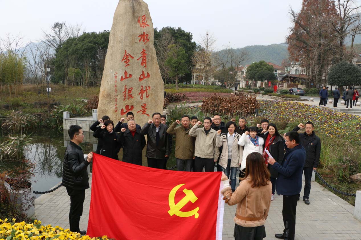 在“绿水青山就是金山银山”石碑前,全体党员面对党旗宣誓,重温令人激动的入党时刻,提醒自己要始终坚定理想信念,不忘初心,牢记使命,砥砺前行。