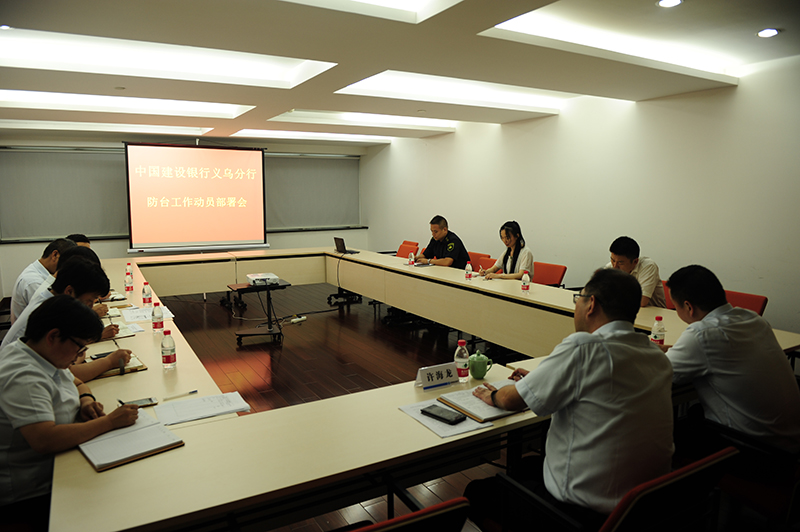 公司义乌守押大队与中国建设银行义乌分行召开联合防台风“玛利亚”工作部署会。义乌大队大队长陈林森,义乌建行中队中队长吴洪斌及行方相关负责人参加。