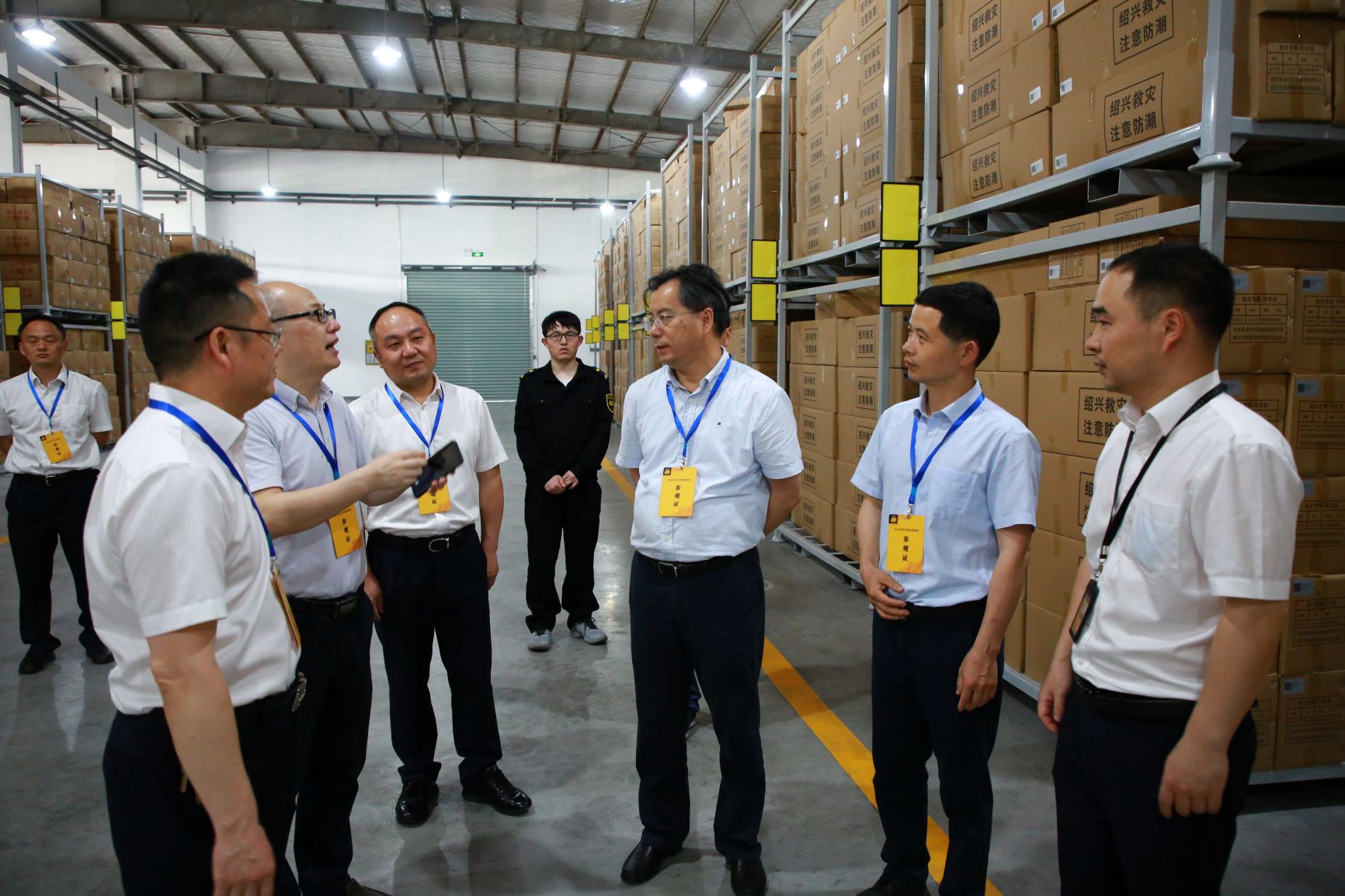 5月10日,浙江省粮食和物资储备局党组成员、副局长、一级巡视员鲍伟民,物资与能源储备处处长陆海萍,储备应急保障中心主任黄俊,绍兴市发改委二级调研员柳建军等一行到绍兴公司调研指导应急物资储备保障工作。香港六合彩资料 党委副书记、总经理诸葛斌,副总经理童军杰,绍兴公司党委副书记、总经理汤华虎等陪同调研。