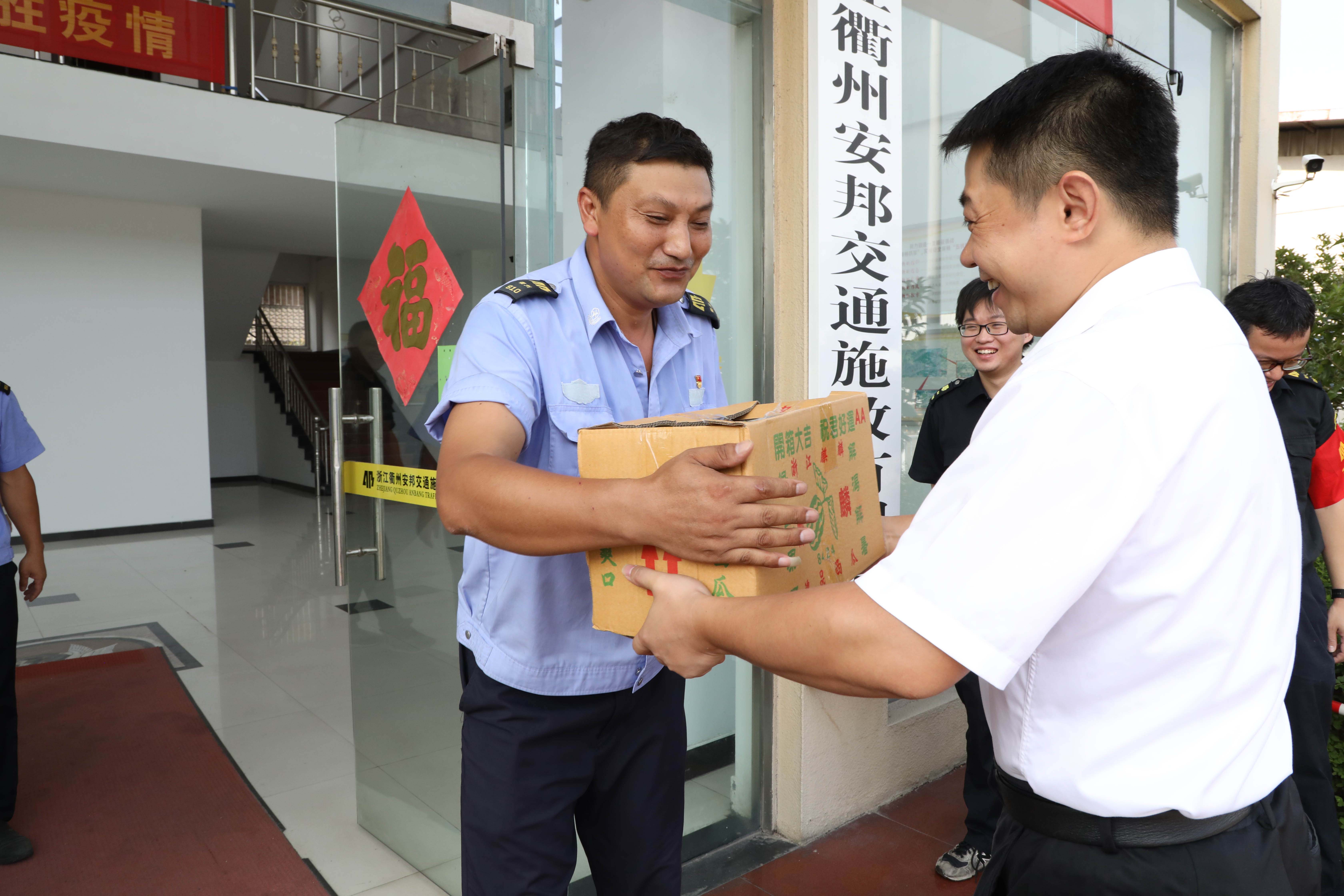 公司党委委员、总经理助理琚苏炳,保安公司副总经理秦万生到各大路口岗位上慰问队员,并送去绿豆汤。总经理助理胡翔到施救公司、机动车检测公司、驾驶人考试服务公司岗位上慰问队员们,给他们送水、西瓜、冰袖等。公司给员工发放清凉用品,食堂制作消暑饮品。