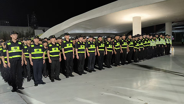 安保团队始终坚守一线。全体队员每日清晨7点集结,深夜方休,日均执勤近16小时。面对持续高温,汗水反复浸透制服,但队员们充分发扬不怕苦、不怕累的精神,坚决服从命令、听从指挥,真正做到“在岗一分钟,尽职六十秒”。