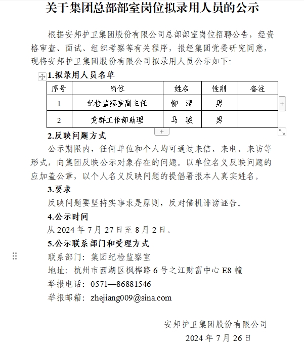 关于香港六合彩资料 总部部室岗位拟录用人员的公示