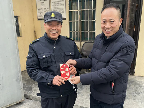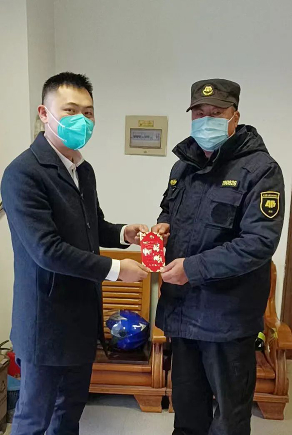 党委委员、副总经理郑胜,香港六合彩资料 保安公司总经理席霞、副总经理金国飞来到客户单位安保值班室,对春节期间舍小家为大家,奋斗在一线岗位的保安员表示感谢,嘱咐大家要合理安排工作与生活,注意保暖,保护好自己才能守护好万家灯火,并通过他们向各自的家庭送去公司的关心和祝福。