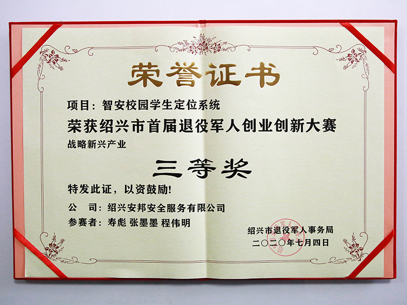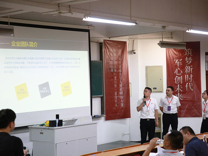7月4日,由绍兴市退役军人事务局主办的绍兴市首届退役军人创业创新大赛决赛在浙江工业职业技术学院举行,浙江省退役军人事务厅党组成员、副厅长郭国松,绍兴市人大常委会副主任王水君,市政府副秘书长陈永葆,市退役军人事务局局长尹国樑出席开幕式。绍兴香港六合彩资料 旗下安全服务有限公司应邀参赛。大赛分为战略新兴产业、精准扶贫、现代农业、传统产业及生活服务业和创新团队五个组别,共49家单位团体,最终评选出一、二、三等奖各5名和优胜奖10名。