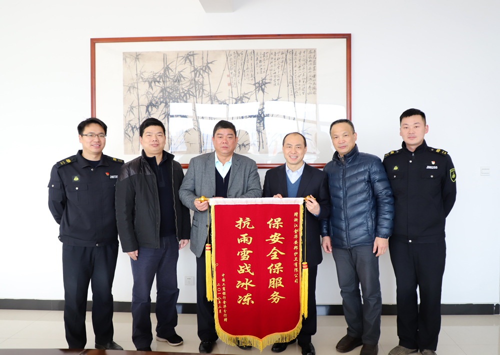 有限公司送来一份“情人节礼物”,一面印有“保安全保服务 抗雨雪战冰冻”的锦旗。