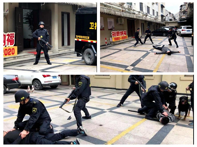 双屿大队与瓯海农商行联合开展金库防抢应急预案演练。演练设置有“歹徒”在押运车入库时,借着伸缩门没有完全关闭,开车撞击伸缩门进入库区,并用枪朝车组人员射击,造成一名交接员受伤倒地。押运员借助有利地形进行还击,击倒并制服歹徒。在确保款箱安全转移金库的情况下,与银行安保人员配合拦截制服其余试图逃离的“歹徒”。