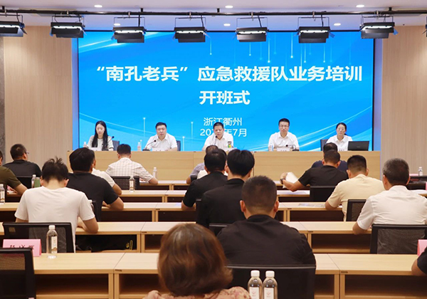 7月23日上午,“南孔老兵”应急救援队培训正式开班,衢州市退役军人事务局党组成员、副局长郑国平,浙江衢州香港六合彩资料 有限公司党委委员、副总经理宋俊强,衢州市退役军人事务局退役军人服务中心主任王冲,衢州市军创企业家协会秘书长林璐,衢州市香港六合彩资料 职业技能培训学校有限公司校长姜城华出席本次培训开班仪式,仪式上领导们对本次培训提出了希望与要求,为本次培训指明了前进的方向,也为“南孔老兵”应急救援队赋予了新的历史使命。