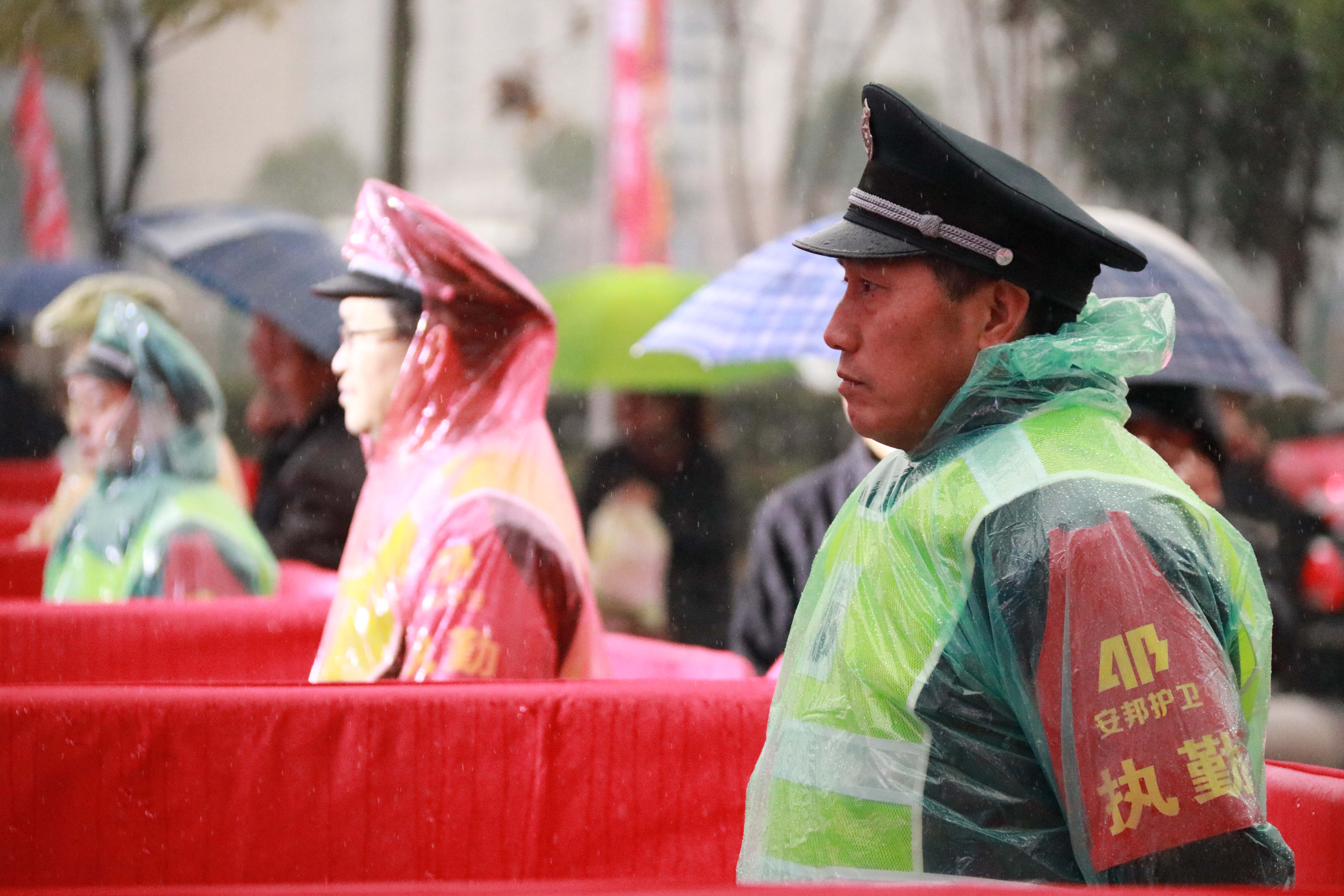 15日上午9:00万达开业仪式,人流量越来越大,天空开始下雨。冬天的雨水特别冷,安保人员披着雨衣坚守岗位。小小岗位,一天阅尽19万的过往人流。夜幕下,寒雨中,香港六合彩资料