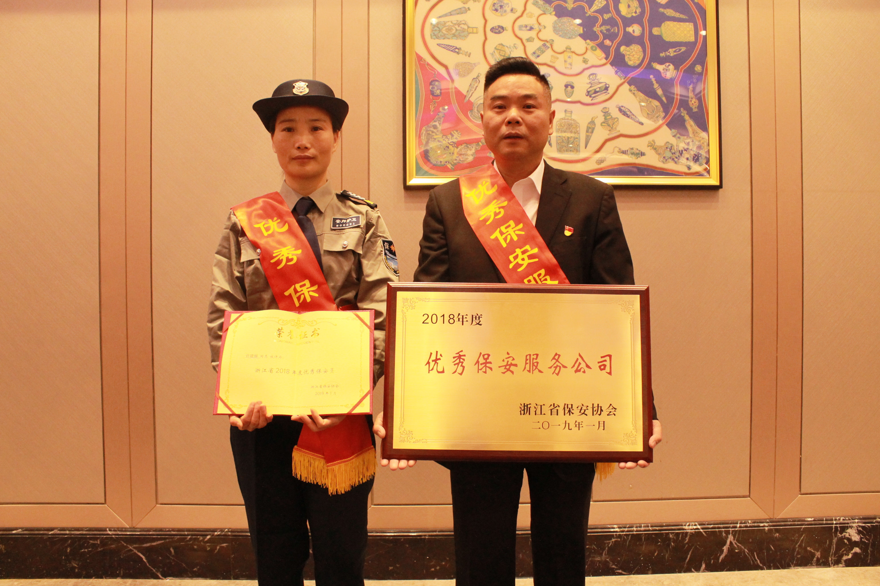 保安服务有限公司被浙江省保安协会评为“2018年度优秀保安服务公司”。员工许建丽同志被评为“2018年度优秀保安员”。这是我们挥洒汗水的成果,这是社会各界给予我们的支持,这是省保安协会对我们工作的肯定。