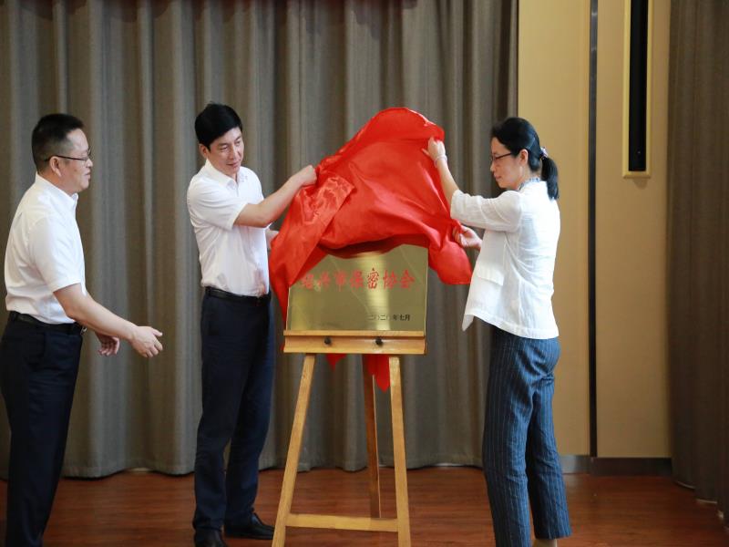 绍兴市委常委、秘书长、保密委主任陆维和浙江省国家保密局总工程师王越平为绍兴市保密协会揭牌。