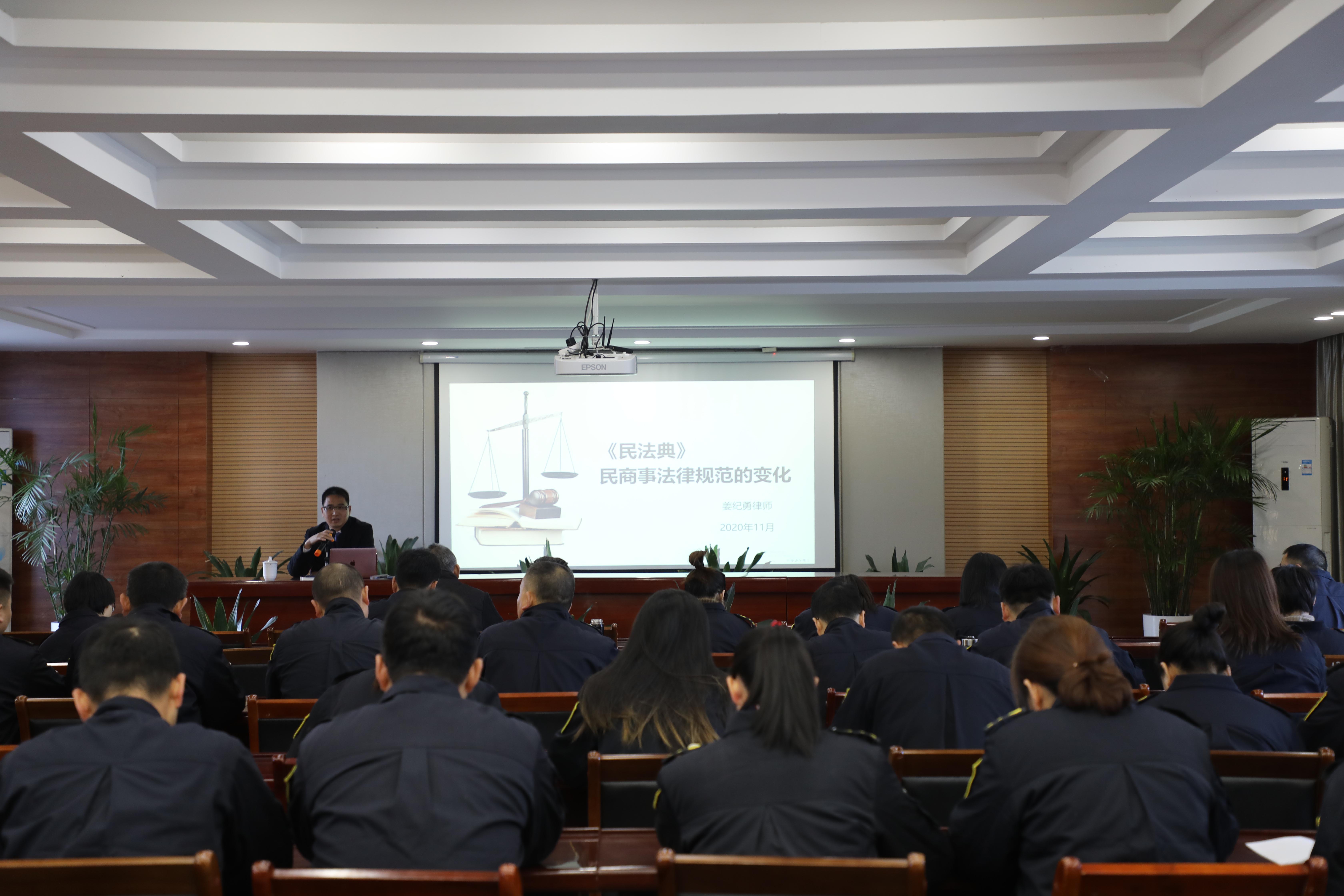 有限公司在二楼大会议室举办《民法典——民商事法律规范的变化》知识讲座,公司党委班子、中层副职以上管理人员及综合、业务管理序列56人参加。