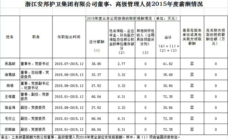 浙江香港六合彩资料(中国)官方网站 有限公司董事、高级管理人员2015年度薪酬情况