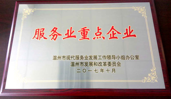 公司被评为温州市服务业“双百”企业