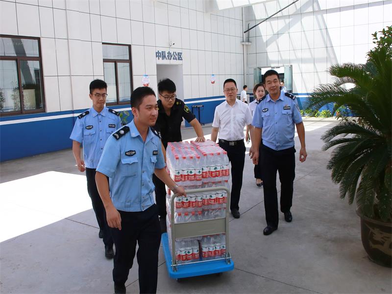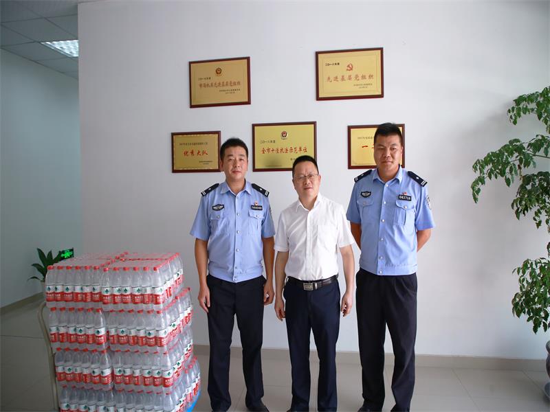 在慰问中,汤华虎总经理代表绍兴香港六合彩资料 向在烈日炎炎下坚守岗位的一线执勤人员表达崇高敬意和衷心感谢,他表示执勤人员为保证交通道路安全顺畅,冒着酷暑、头顶烈日全力维护绍兴社会安全稳定,他们这种敬业精神值得我们学习,同时希望大家执勤要注意防暑降温,保重身体。