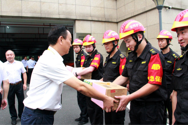赵孟进一行实地参观了湖州公司应急救援物资储备库,听取了湖州公司在安全生产、队伍管理等方面整体情况并观看了湖州公司应急队伍现场演练。